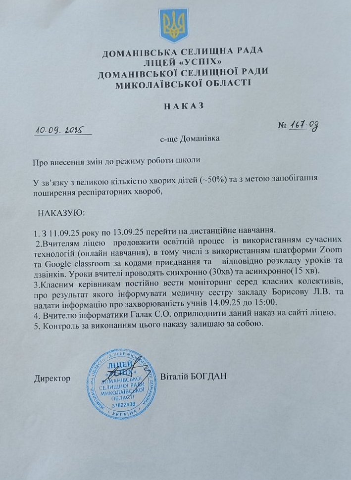 Про відрахування учнів 11-А, 11-Б класів (денна форма навчання) та 12-А класу (вечірня форма навчання)